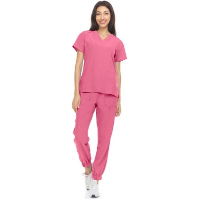 Hey Collection Womens Stretch V-Neck Jogger Scrubs Set, Medical Nursing Tops with Four Pocket Pants