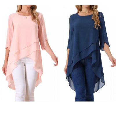INSPIRE CHIC Women's High Low Hem Scoop Neck Asymmetrical 3/4 Sleeve Summer Top 2 Packs