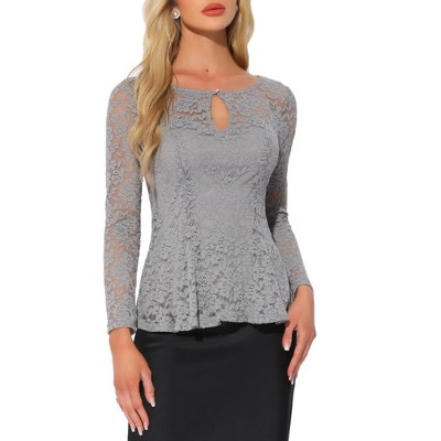 Women's Lace Hem Square Neck Long Sleeve Casual Tunic Blouse - Agnes Orinda