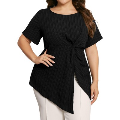 Agnes Orinda Women's Plus Size Asymmetrical Hem Short Sleeve Twist Knot T-Shirt