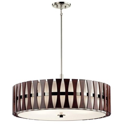 Cirus 14" 5 Light Convertible Pendant with Tempered Etched Glass and White Linen in Auburn Stain