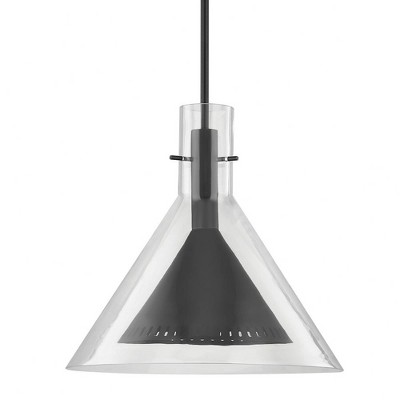 Toltec Lighting Carina 1 - Light Pendant in Matte Black with 10.75" Clear Ribbed Shade