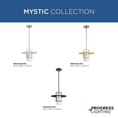 Progress Lighting, Cinq Collection, 1-Light Pendant, Antique Bronze, Geometric Glass Shade