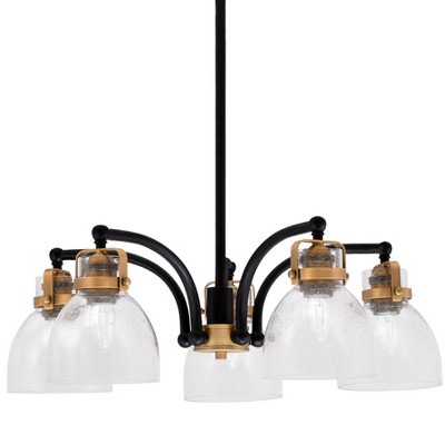 Toltec Lighting Easton 5 - Light Chandelier in Matte Black/Brass with 6" Clear Bubble Shade