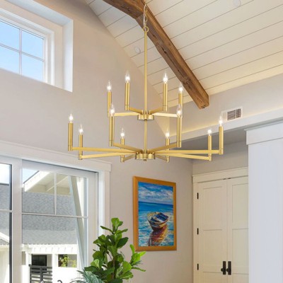 LLHZSY 36 1/5" Simple Modern Candlestick Pendant Chandelier 8+4 Light 2-Tiers Fixture Dining Room Over Table-Gold