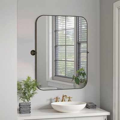 PexFix 32" x 23" Iron Arched Black Pivot Wall Mirror Tilting Bathroom Vanity Mirror Metal Framed Adjustable for Bedroom Living Room