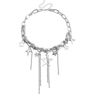 Y2K Layered Star Choker | Chunky Rhinestone Fringe Statement Necklace