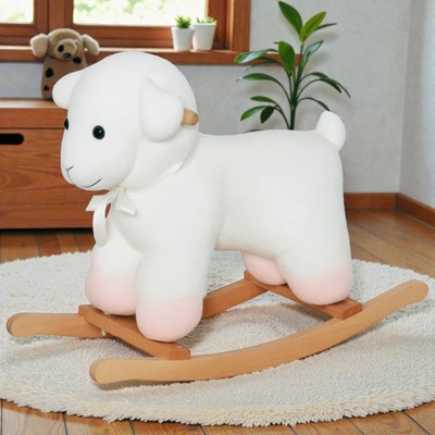 Mshliw Animal Rocker Plush Horse Toy,Kids Rocking Horse Ride-On Toy with Soft Plush Body,Classic Wooden Rocker for Toddlers 3+,Indoor Riding Toy Gift