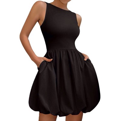 Womens Summer Dresses Casual Sleeveless Tank Mini Short Dress Crew Neck Bubble Sundress with Pockets