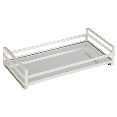 Geometric Tempered Glass Vanity Tank Tray White/Chrome - Home Details
