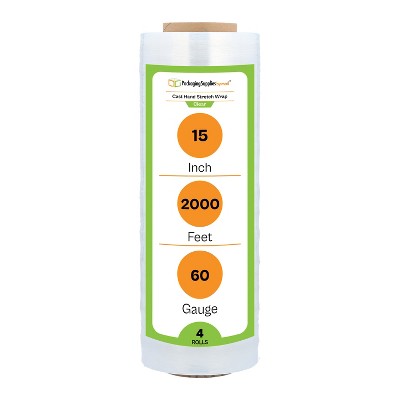 PSBM 15" x 2000' (4 Rolls) Pallet Wrap Stretch Film Hand Shrink Wrap 2000 FT. Clear