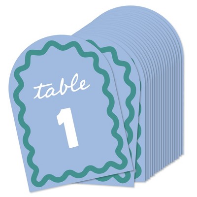 Big Dot of Happiness Blue and Teal Wavy Table Numbers, Retro Wedding or Birthday Party Centerpieces, Double-Sided 5 x 7 inches Cards, Numbers 1-20