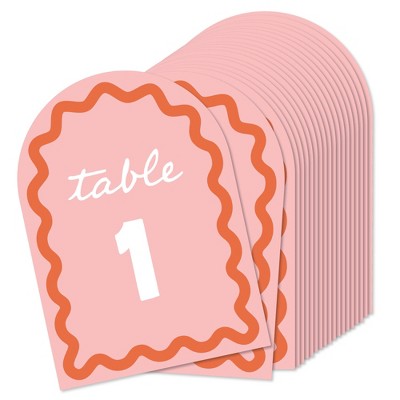 Big Dot of Happiness Pink and Orange Wavy Table Numbers, Retro Wedding or Birthday Party Centerpieces, Double-Sided 5 x 7 inches Cards, Numbers 1-20