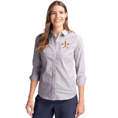 Boston Red Sox Cutter & Buck Stretch Oxford Womens Long Sleeve Dress Shirt