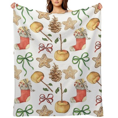 FIONECA Cream Gingerbread Man Cookie Orange Slice Pattern Whimsical Christmas Throw Blanket Winter Decor 50x60 inches