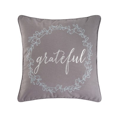 C&F Home "Grateful" Cursive Wreath Embroidered 100% Cotton Accent Throw Pillow 18" x 18"