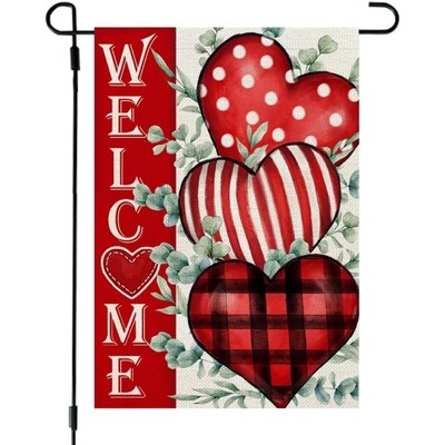 Lomsoe Valentines Day Garden Flag Welcome Red Heart Flag Anniversary Wedding Flag Valentines Gift Valentines Decor Single Side 12x18Inch