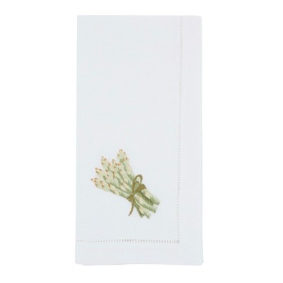 Saro Lifestyle Asparagus Embroidered Cotton Decorative Napkins (Set of 6) – Botanical Bundle Detail for Dining and Entertaining, 20"x20", Green