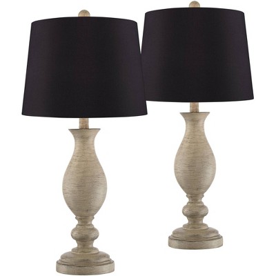 360 Lighting Marcel Industrial Table Lamps 24 1/4" High Set of 2 Black with USB Charging Port and Nightlight LED Cream Shade for Bedroom Bedside Desk
