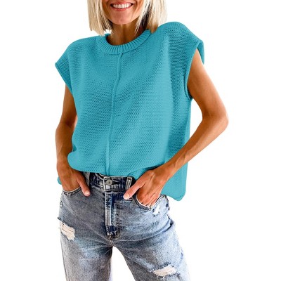 Coolmee Women's Summer Cap Sleeve Tops Casual Crew Neck Loose Fit Knit Lightweight Sweater Pullover Top