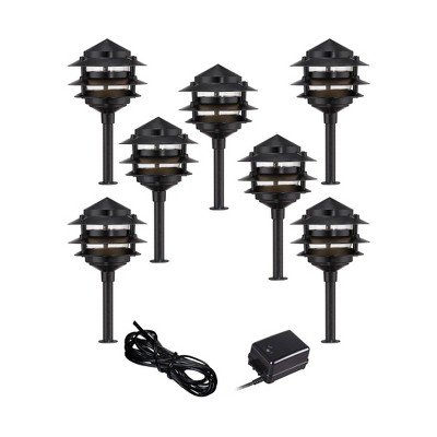 John Timberland Pagoda 12" High Modern 9-Piece Complete Outdoor Landscape Lighting Set Porch House Exterior LED Bulb Dusk To Dawn Black Aluminum