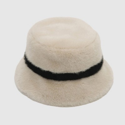 Anna-Kaci Women's Faux Shearling Bucket Hat with Contrast Band Detail and Soft High Pile Texture - Beige