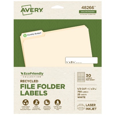 Avery EcoFriendly Recycled File Folder Labels, 2/3" x 3-7/16", White, Permanent Label Adhesive, 750 Printable Labels (48266)