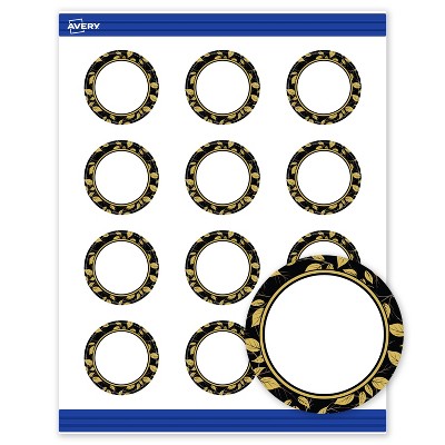 Avery Round Cards, 2" Diameter, Gold Arch Florals Design, Matte
