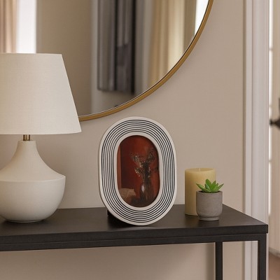 Decorative Oval Etched Lines Photo Frame - Contemporary Frame for Living Room, Dorm, Console Table, and Home Decor - Black & White