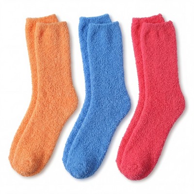 Tipi Toe Women's 3 Pairs Cozy Microfiber Anti-Skid Citrus Crush Patterned Soft Fuzzy Crew Socks