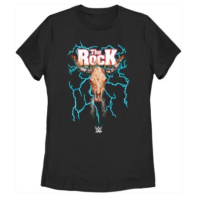 Juniors Womens WWE The Rock Electric Bull Logo T-Shirt