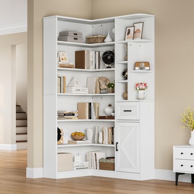 Garvee 71.8'' Farmhouse Corner Bookshelf, 5-Tier L-Shaped Tall Bookcase, Large Corner Display Rack for Living Room Bedroom