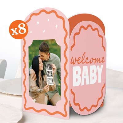 Big Dot of Happiness Pink and Orange Wavy Baby Shower Photo Holder Centerpieces, 4x6 Picture Display Box, Table Decoration for Retro Party, 8 Count