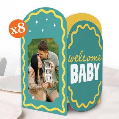 Big Dot of Happiness Teal Green and Yellow Wavy Baby Shower Photo Holder Centerpieces, 4x6 Picture Display Box, Table Decoration for Retro Party, 8 Ct