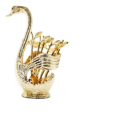 Spode Woodland Collection 6" Teaspoon Set Decorative Bird Motifs 6 Assorted Porcelain Handle & Steel Spoon Heads Holiday Flatware
