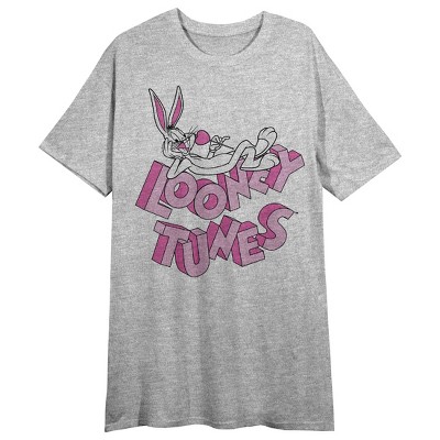 Looney Tunes Bugs Bunny and Series Title Logo Women's Gray Short Sleeve Crew Neck Sleep Shirt