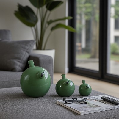 HomeRoots Set of Three Lemongrass Green Polyresin and Metal Bird Sculptures