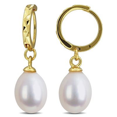 EVERLY JEWELRY | Huggie Drop Earrings with 7-8mm freshwater pearl in Silver – Multiple Metal Color Option