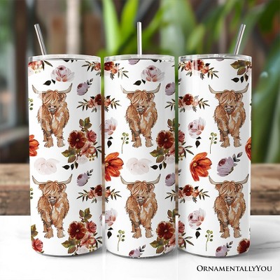 Highland Cow Floral 20oz Tumbler With Lid and Stainless Steel Straw, Chic Western Farmhouse Gift Cup | OrnamentallyYou