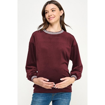 Hello Miz Women's Velvet Striped Neckline Long Sleeve Maternity Sweatshirt Top