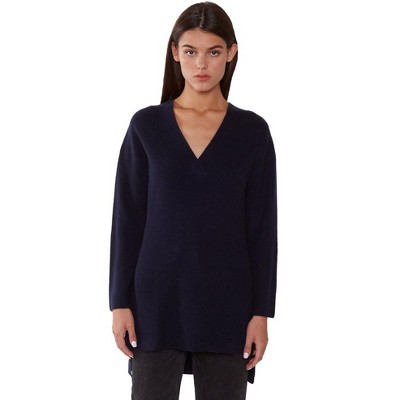 JENNIE LIU Women's 100% Pure Cashmere Long Sleeve Ribbed Tunic Sweater