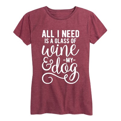 Women's - Instant Message - All I Need is a Glass of Wine and my Dog Short Sleeve Graphic T-Shirt