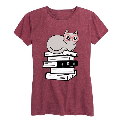 Women's - Instant Message - Cat On Books Short Sleeve Graphic T-Shirt