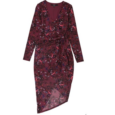 WEST K Womens Amber Long Sleeve Surplice Midi Dress