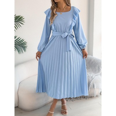 Women's Elegant Blue Crinkle Wrap Dress with Ruffled Hem - Cupshe