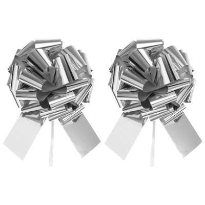 Unique Bargains Bright Durable Metallic Gift Wrapping Large Pull Bow for Wedding 2 Pcs Silver 24 inch