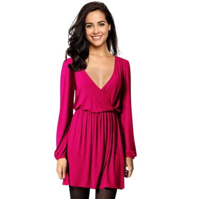 Womens Deep V Neck Mini Dress Long Sleeve Elastic Waist A Line Casual Wrap Midi Dress