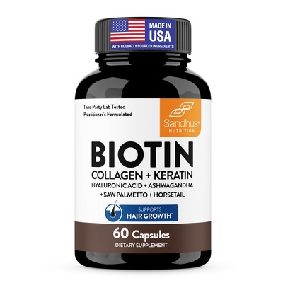 Sandhu's Biotin, Collagen & Keratin Complex | Hair Supplements for Women & Men | Supports Hair Growth, Skin & Nails | 60 Count, Made in USA