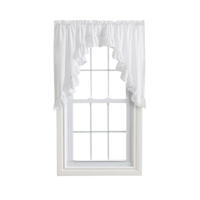 Ellis Curtain Classic Wide Solid Color Perma Press Ruffled Window Swag White
