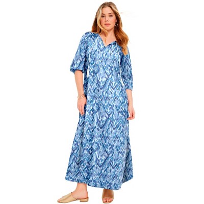 Women's Plus Size V Neck Drawstring 3/4 Sleeve Summer Flowy A Line Midi Babydoll Dresses - Agnes Orinda